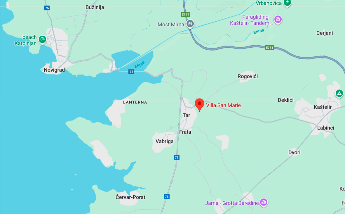 Der Doppelort Tar-Vabriga verfügt über eine umfangreiche Infrastruktur mit Bars, Restaurants, Cafés und Einkaufsmöglichkeiten, die Sie in nur 5 Minuten zu Fuß erreichen können. Er eignet sich ausgezeichnet, um Istrien zu entdecken. In 10 Minuten Autofahrt gelangt man zu den Küstenstädten Poreč und Novigrad.